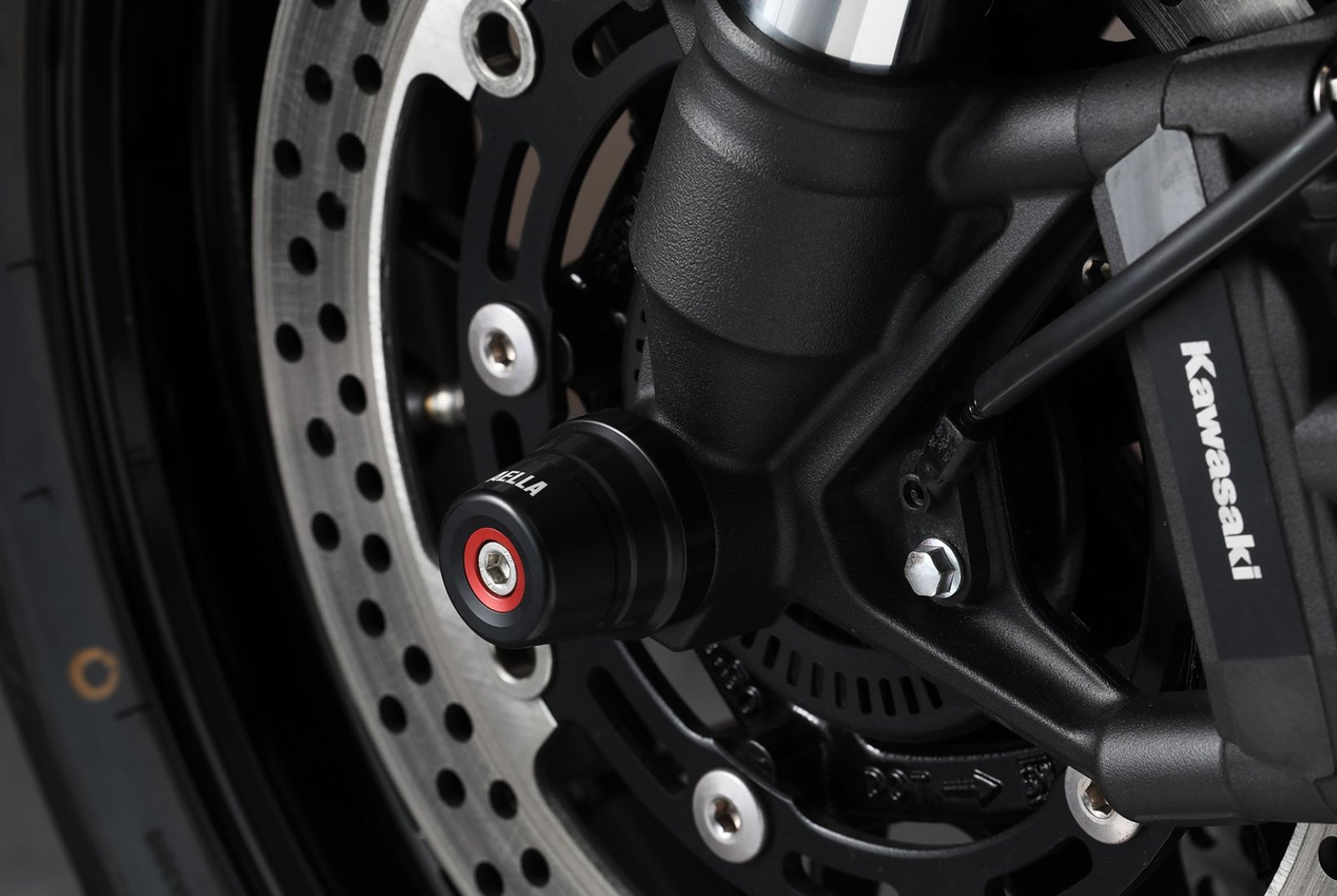 Japan’s most famous accessories and special parts company has teamed up with Lanesplit. Introducing Aella’s front fork sliders for the Kawasaki Ninja 1000. These are hand crafted in Japan. The slider is designed to match the inner rotor of the brake and protects tightly protects up to the axle nut.