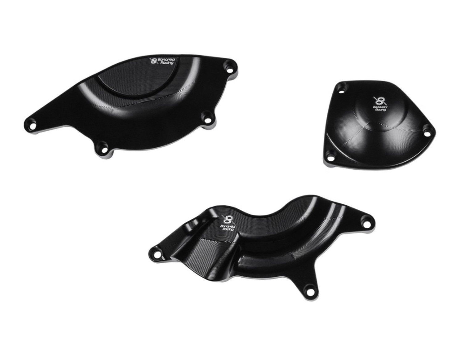 The insertion refers to the engine guards right side clutch / distribution + left side.Ā Tough and lightweight protectors that minimize damage during falls without affecting the weight of the bike.Ā From the collaboration with the teams that race in the world superbike, the engine crankcase protections of Bonamici Racing are born.Ā Made of high-strength aluminum alloy, machined from solid with CNC technology and finished with black anodization, the kit perfectly protects the motorbike casings in case of any falls.Ā Bonamici Racing boasts the widest range of aluminum engine guards dedicated to the major sports bikes on the market.