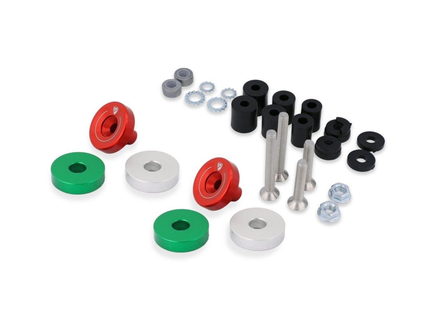 Handlebar counterweights made from solid light alloy using CNC machines and subsequent surface anodization. The kit is supplied with the necessary screws for mounting on the most common types of handlebars. On motorcycles equipped with standard handguards it will be necessary to remove them.
