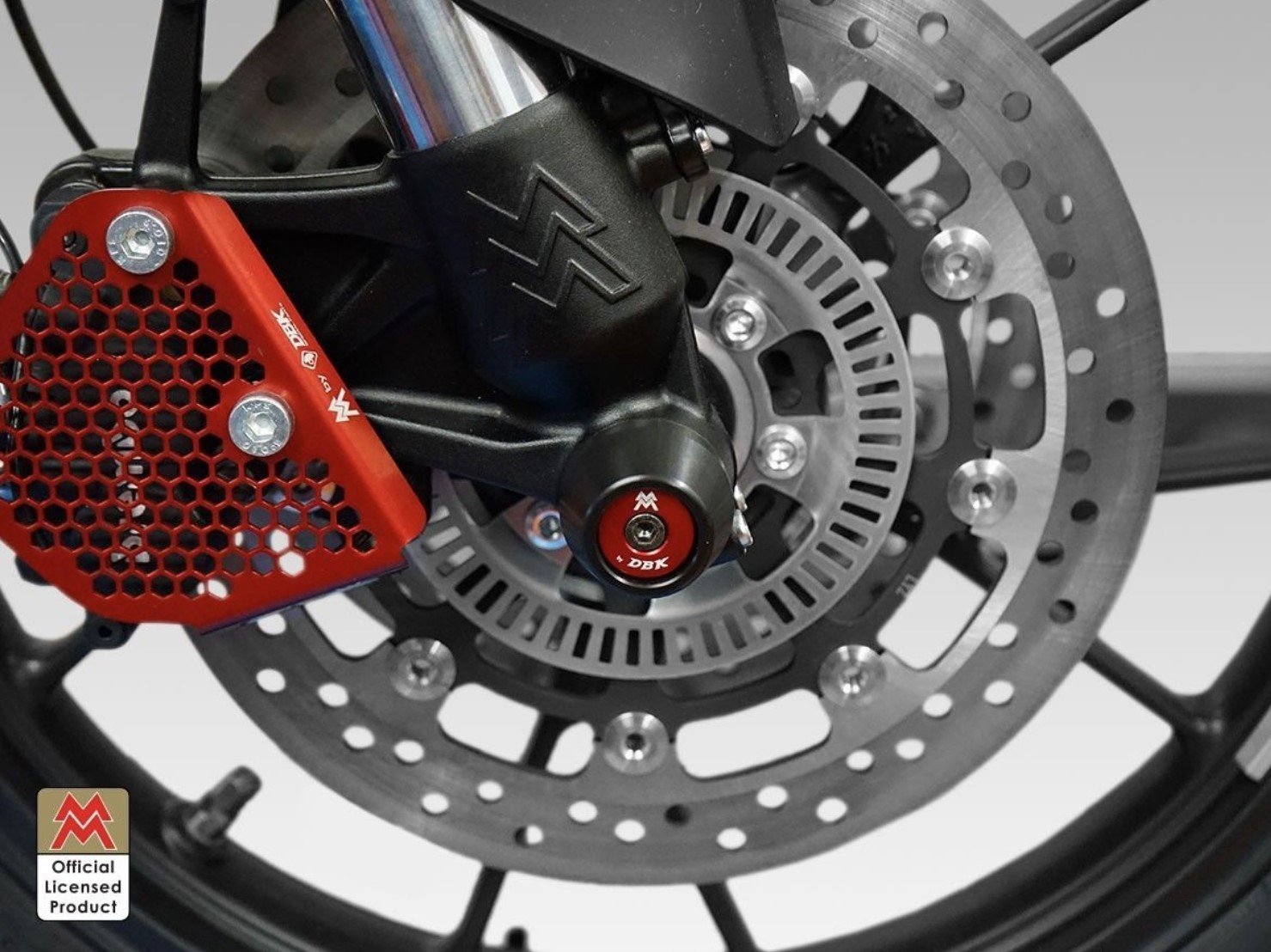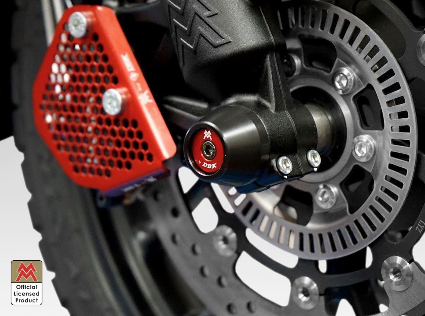 Worked by full aluminum 7075 t6, anodizing surface colored. Kit ready for assembly, assembly on the front wheel stud, protects legs fork in case of fall.Ā DUCABIKE designs, develops, manufactures and markets its products, based on experience in all the years on road and in racing to do every effort to give the maximum reliable and guarantee on products, find the design and the best performance, utilize support of our prepared technicians and the best test pilot, employing the best materials and the innovative technology in the motorbike world, this offer products always at the top.