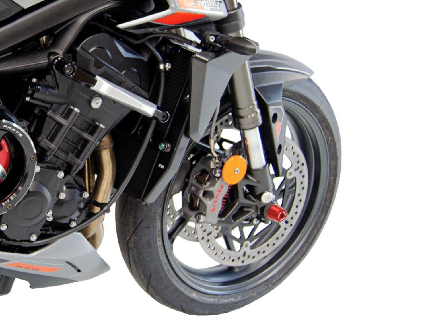 Worked by full aluminum 7075 t6, anodizing surface colored. Kit ready for assembly, assembly on the front wheel stud, protects legs fork in case of fall.Ā DUCABIKE designs, develops, manufactures and markets its products, based on experience in all the years on road and in racing to do every effort to give the maximum reliable and guarantee on products, find the design and the best performance, utilize support of our prepared technicians and the best test pilot, employing the best materials and the innovative technology in the motorbike world, this offer products always at the top.