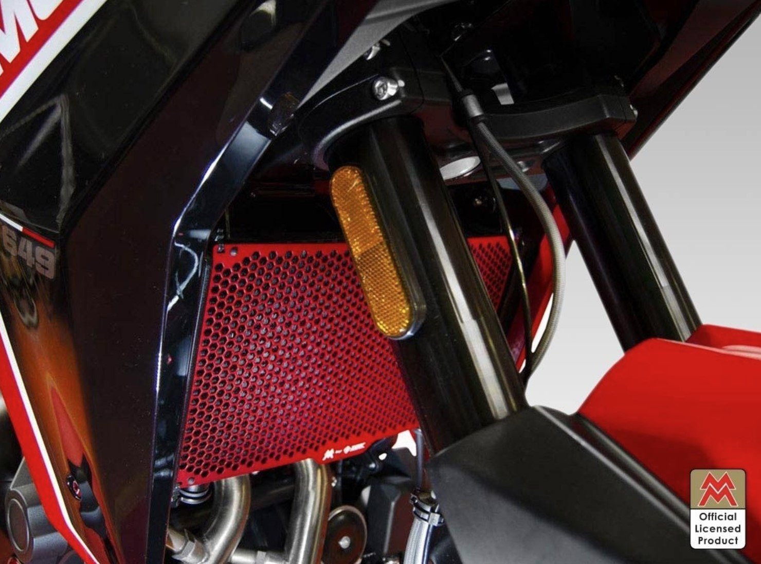 In laser-cut light alloy, colored surface anodizing.Ā It protects the water radiator in case of impact with stones or other objects, always maintaining the maximum cooling efficiency of the radiator.Ā All the small parts necessary for assembly are supplied.