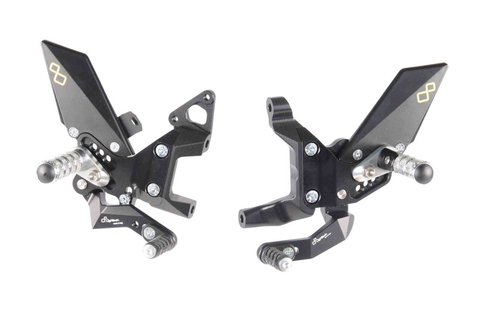 Lightech footpegs are realized in CNC machined Ergal. Lightweight and resistant, they have a vast range of settings which allow to find the perfect configuration for every rider and the best grip for maximum precision during races and street riding.