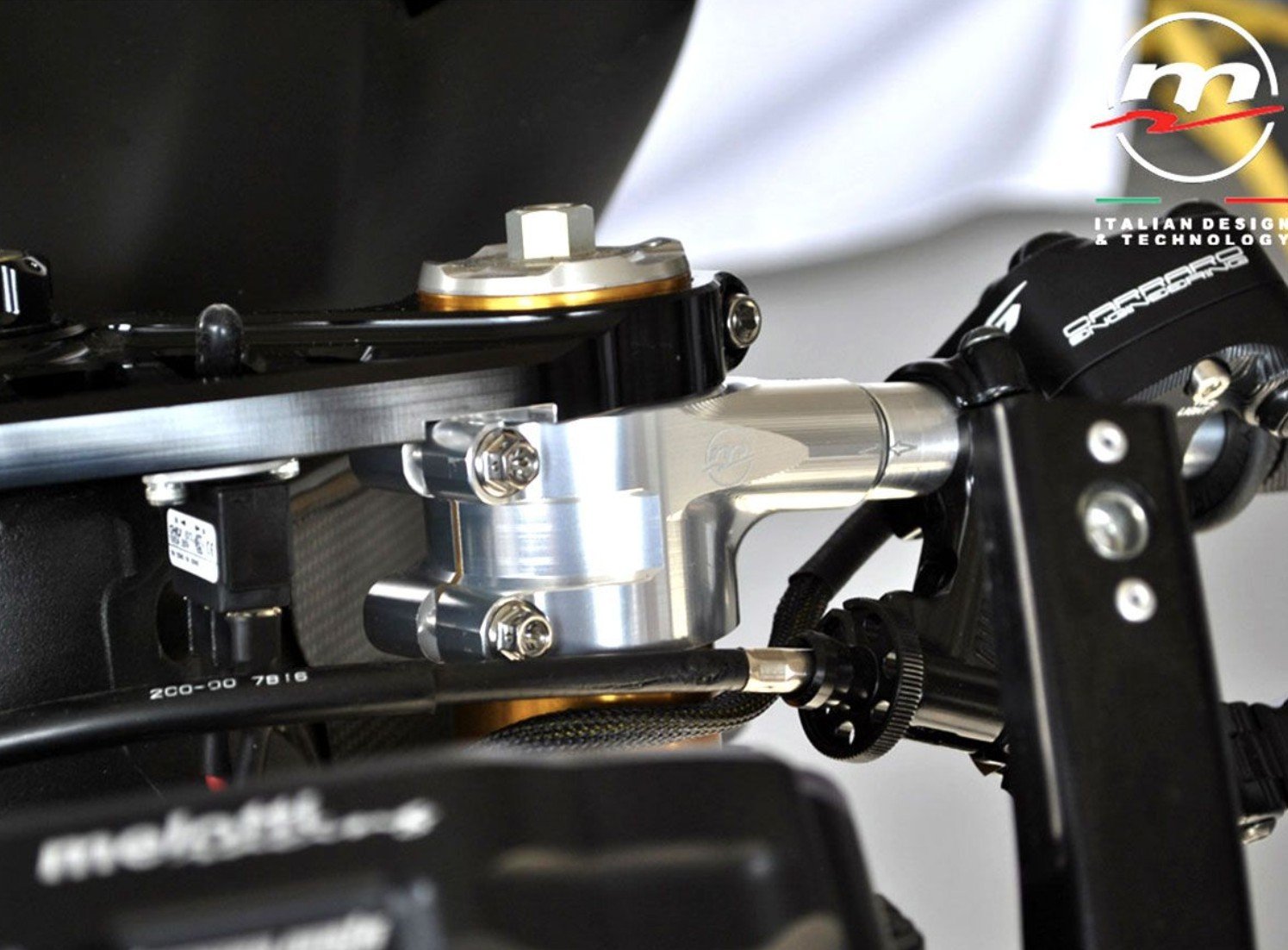 -We have adopted a GP-type bracelet-bar front coupling system (cone-shaped) to obtain a high rigidity and a minimum external encumbrance. -This choice offers, as a further plus, the possibility to use the entire length of the bar for the assembly of the controls.