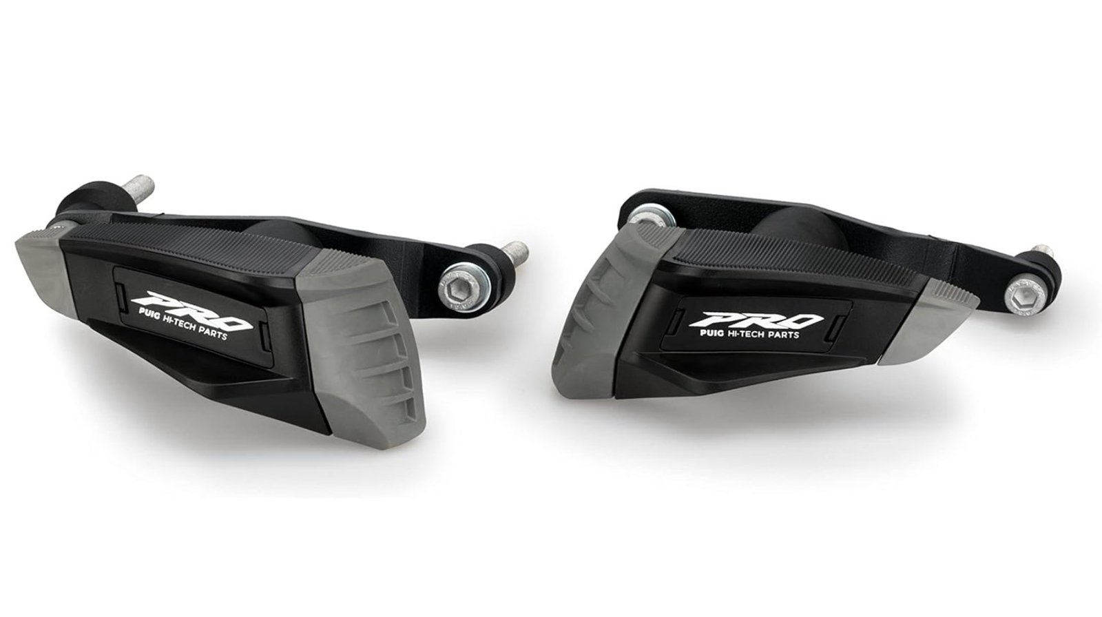 Puig Frame Sliders consists of a central body made of polyamide (impact and abrasion resistant) and two pieces (front and rear) made of thermoplastic elastomer to absorb possible impacts with the rider.Ā Its racing design has an aerodynamic character with the use of side wings that in turn have the function of absorbing part of the impact in the event of a fall given their conical configuration.Ā To personalize the slider, the elastic parts (front and back) can be purchased in different colors.Ā Protector compatible with all the references that mounted the Pro protector.