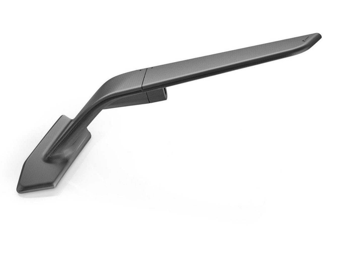 Out of the interface between racing experience and aeronautical inspiration comes a new mirror: Stealth, an accessory specifically designed for supersport bikes.Ā It consists of a fixed part, which allows the fitting directly to the fairing, and a movable part, which acts as a mirror glass holder.Ā Thanks to a rotating system, by a simple movement, the two parts get aligned: in closed position the mirror becomes an aerodynamic foil.Ā While the mirror glass holder is always the same, the fixed component is designed ad hoc for each supersport bikes for which Stealth was developed, looking for the best solution to match the relative aerodynamic results.Ā Made of billet aluminum, it has a convex glass surface to provide a wider viewing angle and is available in three different anodized colors.