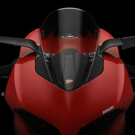 Stealth’s design, with its wing-like shape and 25° angle relative to the ground, give it a linear look, ensure it generates downforce, in turn improving the bike’s grip and handling performance, especially at high speed. Downforce pressure is around 4 kg at 300 km/h.Ā The ergonomics has been optimized as well: when the rider takes a sporty riding position, the mirrors are aligned with the rider’s eye level.Ā In this way, the rider does not have to raise his position to get a correct rear view, keeping the head protected by the headlight fairing and, therefore, by the pressure that impacts the face at high speed.